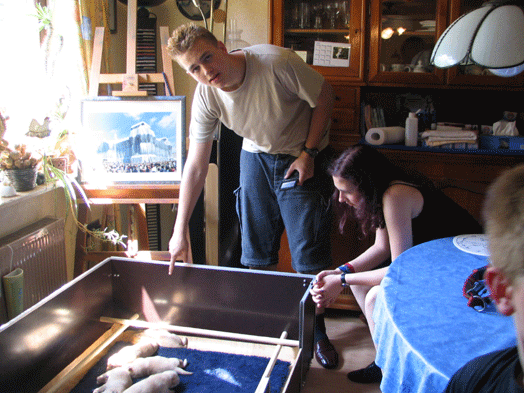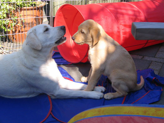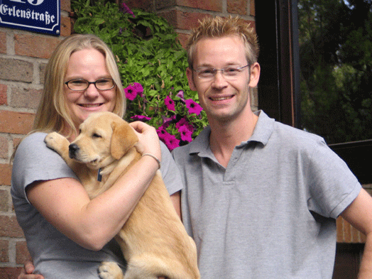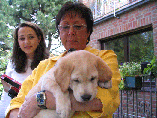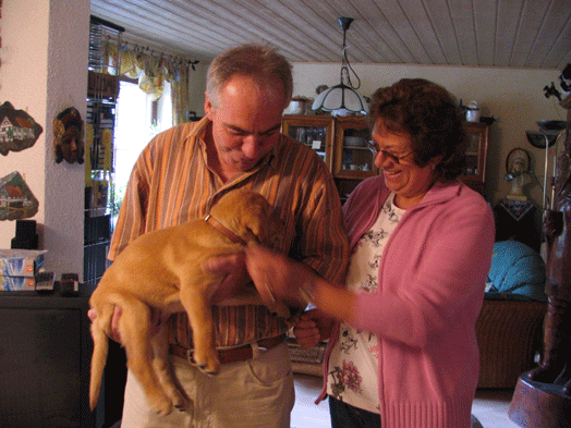 Die neuen Besitzer kamen bei uns ganz aufgeregt an und meinten, dass das Warten auf das neue "Familienmitglied" ähnlich spannend war wie früher als Kind das Warten aufs "Christkind". Es ist sehr schön mitzuerleben, wieviel (Vor-)Freude bei allen vorhanden ist und wir sind uns sicher, dass alle Welpen ein liebe- und verantwortungsvolles neues Zuhause gefunden haben. Nach vielen Fragen an uns sind bei allen die Vorbereitungen abgeschlossen - die Wartezeit wurde mit dem Studium unserer Merkblätter und weiterer Fachlektüre überbrückt, der Hund bei der Stadt angemeldet, die Haftpflichtversicherung abgeschlossen, Futter und alles Zubehör als "Erstausstattung" besorgt. Die Wohnung wurde welpensicher gestaltet und die ersten Termine für die Welpenspiel- und prägestunden vereinbart. Alle sind über die sehr wichtige Sozialisierungs- und Prägephase bis zur ca. 16. Lebenswoche informiert und können sich nun - mit den restlichen Infoblättern, dem Impfpass, einer Kopie des Wurfabnahmeberichtes und Futterproben ausgestattet - in das neue "Abenteuer" stürzen.