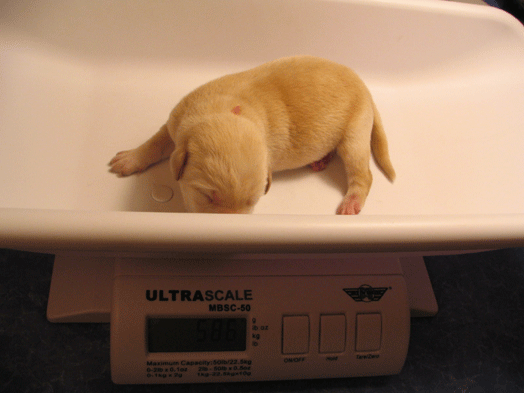 "sehr guter Allgemeinzustand" bescheinigt. Die Unterbringung mit direktem Zugang zum Gartenauslauf und die Ausstattung mit Spielzeug wurden ebenfalls als "welpengerecht und ohne jede Gefahrenquelle" bestätigt. Zum Schluss wurden alle Welpen gewogen und das Gewicht auf dem Bogen eingetragen.