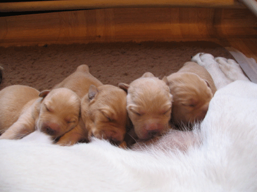 Daraufhin ist Tracy am 20. April 2006 von Sesam aus Lühlsbusch gedeckt worden. Nach 59 Tagen sind die Welpen des A-Wurfes am 18. Juni 2006 zur Welt gekommen und wurden mit 8 Wochen (am 13. August 2006) an die neuen Besitzer abgegeben. Die Fotos können Sie in der Rubrik "Fotoalbum" anschauen.