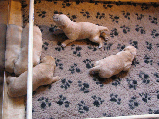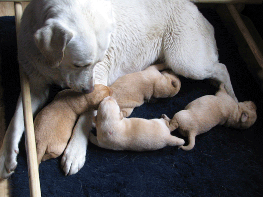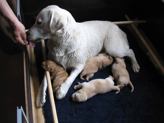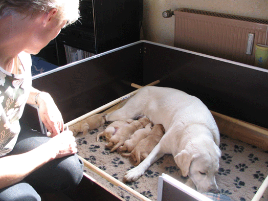 Nach zwei gemeinsam durchwachten Nächten hat Tracy 5 gesunde Welpen geboren - eine Hündin und 4 Rüden. Alle sind gesund und putzmunter und Tracy ist eine absolut rührende Mutter!!!