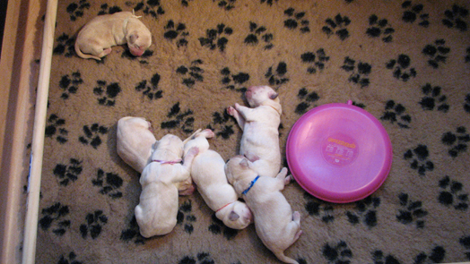 Die letzten Tage vor der Welpenübergabe vergehen nun wie im Flug und wir können uns gar nicht vorstellen, dass bald wieder statt dem Rumgeflitze und lautstarkem Gebalge der Racker wieder Ruhe einkehrt und an der gleichen Stelle wieder die Couchgarnitur stehen wird, wo jetzt 'das Leben tobt'.