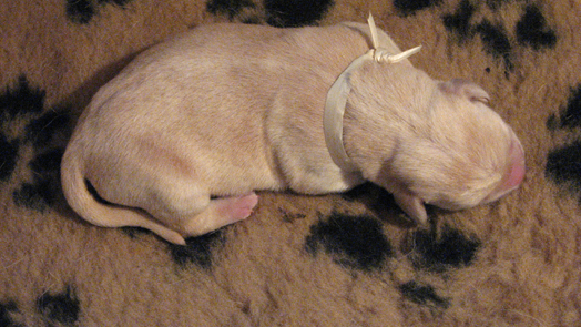 "Brightful Star" - Rüde, geb. 19:40 Uhr, 464 g, Kennzeichnung: rosa Band/violetter Nagellack.