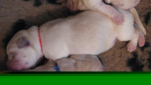 'passenden' Welpenkäufern entsprechend der individuellen Lebensumstände und Vorstellungen/Pläne zugeordnet. Die Welpen werden nun bereits mit den Namen gerufen, die die neuen Familien ausgesucht haben. Zudem werden sie an das Tragen eines Halsbandes gewöhnt.